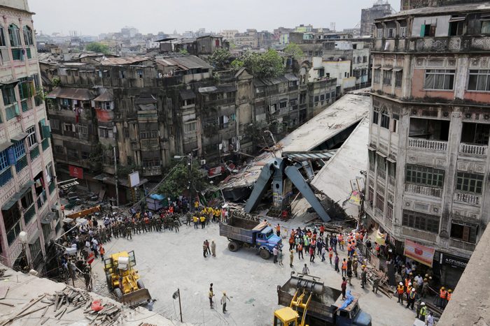 Срутеният надлез "Вивекананда" смачкал десетки коли и рикши.