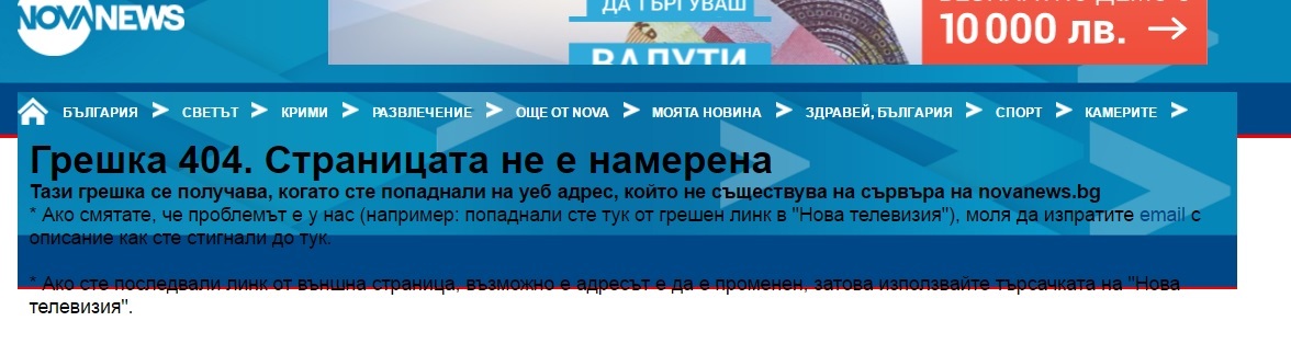 Ако решите да кликнете върху линка обаче, ще бъдете информирани, че такава страница не съществува: