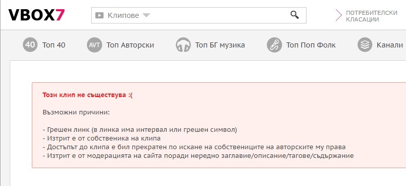 Опитахме да открием клипа и във VBOX7 с линка, на който го гледахме сутринта: