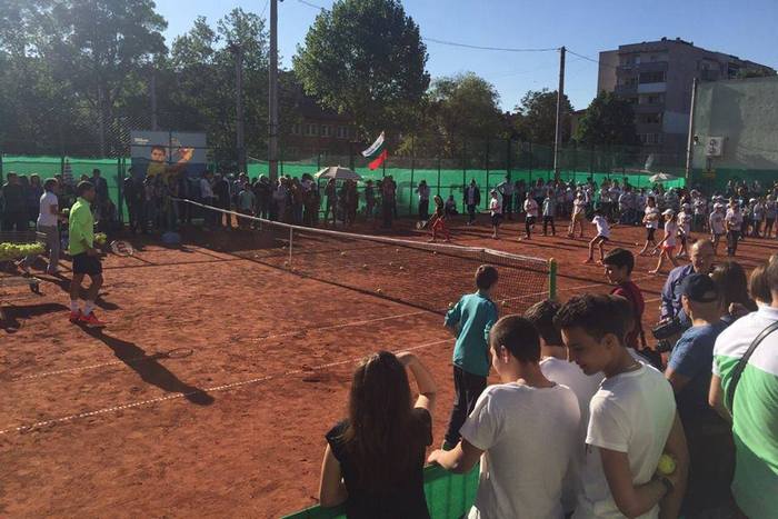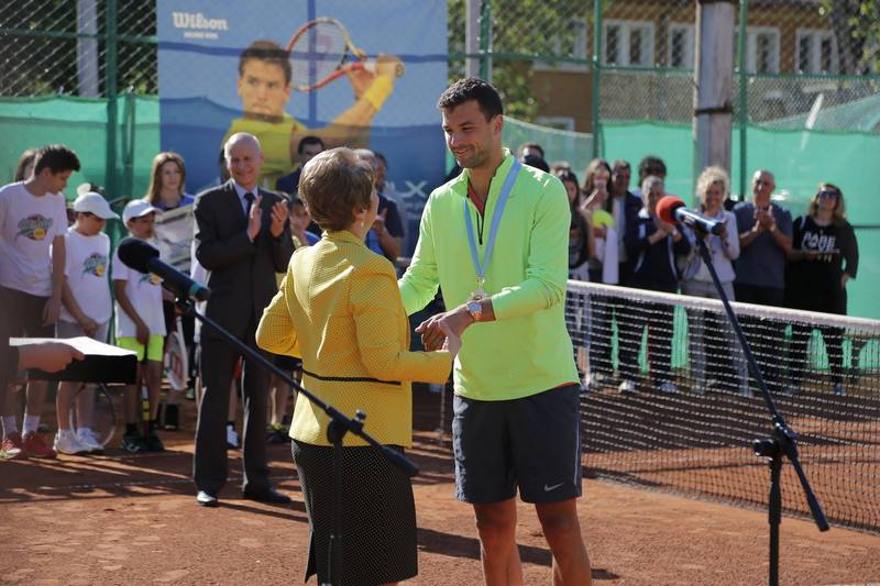 След церемонията Димитров, придружен в България от своя треньор Франко Давин, тъй като двамата са на път за турнир в Истанбул, даде открит урок за малки тенисисти и доста се позабавлява.
