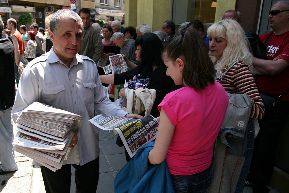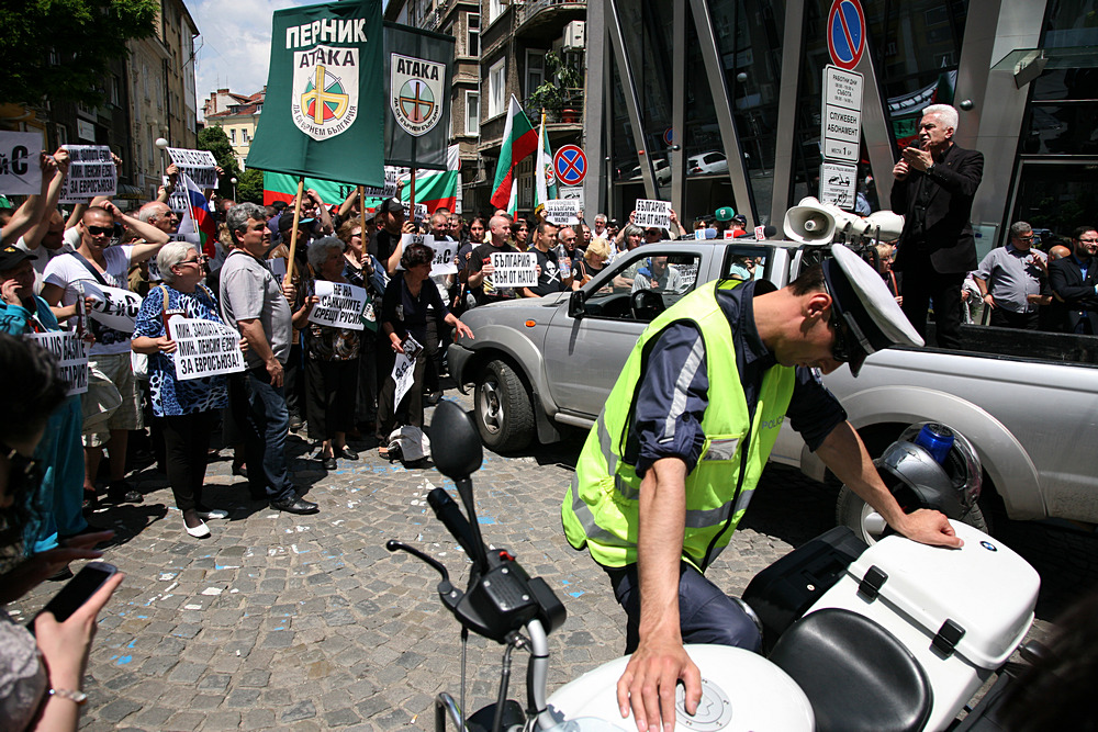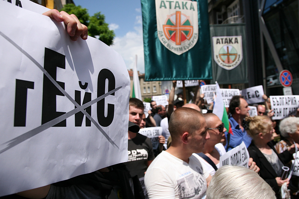 Около 100-ина души се събраха днес в 12 ч пред сградата на Европейската комисия, на ул. Раковска 124 в София. Поводът - протест на АТАКА за "защита на православните ценности". Или не по националистки - срещу гейовете, кръвосмешението и педофилията. И за 500 евро минимална заплата, 250 евро минимална пенсия в целия съюз.