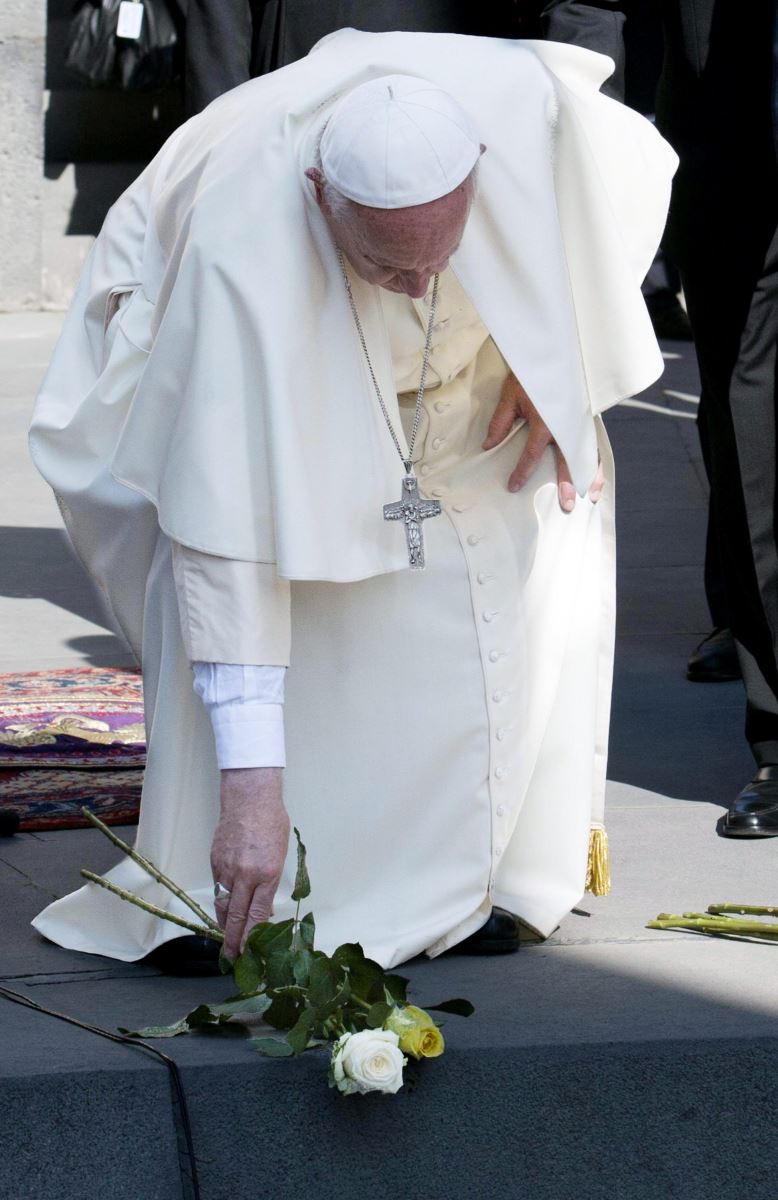 Франциск се спря рано сутринта в Цицернакаберд, в мемориала и музея, посветени на жертвите от геноцида. Развълнуван, той се включи в молитва заедно с арменския президент Серж Саркисян и главата на Арменската апостолическа църква Католикос Карекин II.