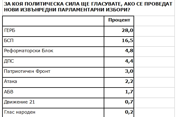 Агенцията тества и политическите сили, ако има предсрочни парламентарни избори.