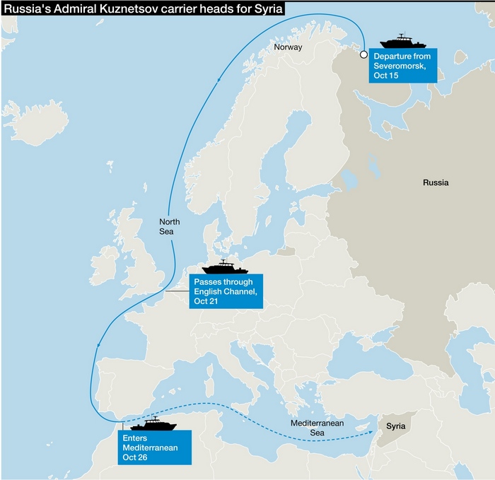 Самолетоносачът "Адмирал Кузнецов" - флагман на руския флот, влезе в Средиземно море през уикенда, съпроводен от редица насмешки от страна на западните медии. Единственият руски самолетоносач - остатък от дните на съветската мощ, има дълга история от аварии - и в морето, и на пристанището - и дизелови двигатели, построени за студените руски води, което личи от стълба черен пушек, издигащ се над него. Необходимо му е често презареждане и снабдяване, а боеспособността му никога не е била изпробвана. И все пак има значение, че "Адмирал Кузнецов" бе пратен към източната част на Средиземно море, макар че приносът му към руската офанзива в Сирия вероятно ще бъде минимален. Въпреки това той е стабилен символ на намеренията на Кремъл да продължи да влияе върху събитията в региона.