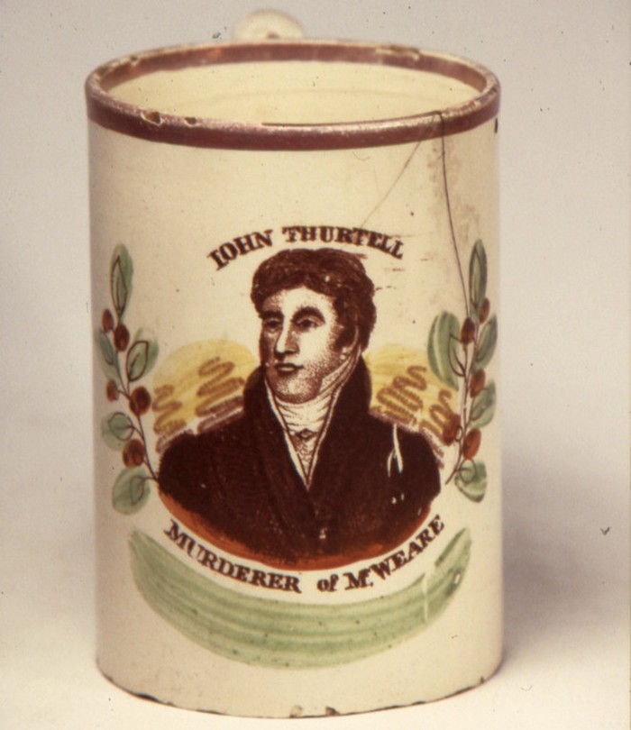 През 1820 г. театралните мениджъри осъзнават печалбите, които могат да постигнат, ако произведенията им се базират на скорошни убийства. Един от постерите в изложбата например рекламира трагедия, базирана на убийството на Уилям Уеар от Джон Търтъл. Плакатът обещава на публиката “идентични възстановки, намекнати от всекидневната преса в отразяването на случая”. Театралните постановки са били “високоинформиращи продукции”. В своите рекламни брошури те залагат на подробно текстово описание на насилствените сцени, както и на убедителни графични илюстрации.