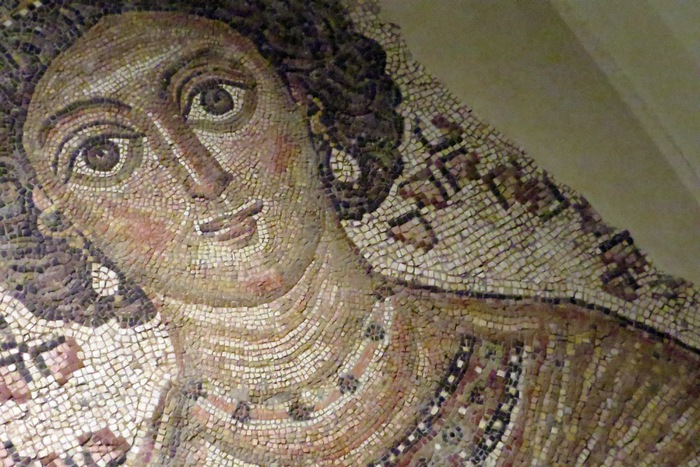 Гърците, повярвали в божествената красота на симетрията, го подлагат на строга геометрична дисциплина, търсейки неговата триизмерност. По тази причина носът – като най-скулптурен елемент става изключително важен. Византийската мозайка обаче прави обратното – при нея имаме чувството, че очите са погълнали цялото лице. За разлика от римляните, византийците привилигироват задния план, фигурата се издига оттам и тъкмо затова и най-дълбоката част, очите, заемат най-важна роля, обсебват и консумират останалите черти на лицето.