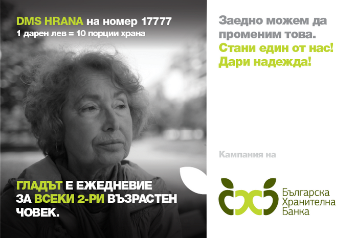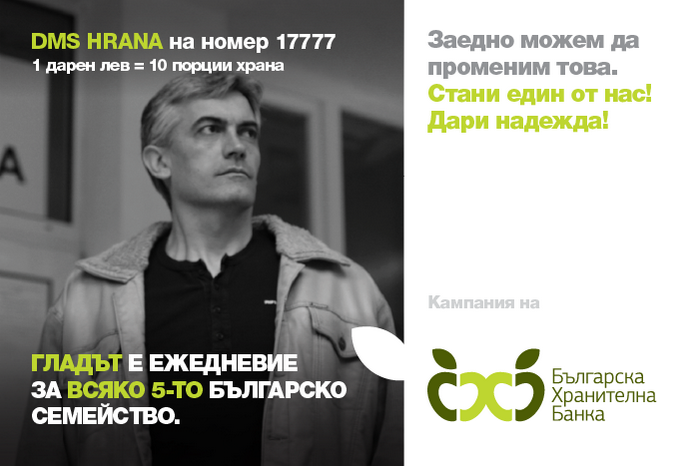 „В тази връзка се обръщаме и към всички желаещи да подпомогнат дейността ни финансово, да се включат в DMS кампанията ни „Стани един от нас. Дари надежда!“ и да дарят средства като изпратят кратко съобщение с текст DMS HRANA на номер 17 777. С всеки 1 дарен лев, Българска хранителна банка ще осигури 10 порции храна за нуждаещи се деца, възрастни или семейства в затруднение“.