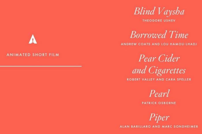 Канадско-френската продукция "Сляпата Вайша", която ще се бори за престижната статуетка, е по разказ на писателя Георги Господинов. Историята е за момиче, обречено цял живот да е незрящо за настоящето. С едното си око то гледа в миналото, а с другото в бъдещето – и вечно остава раздвоено.