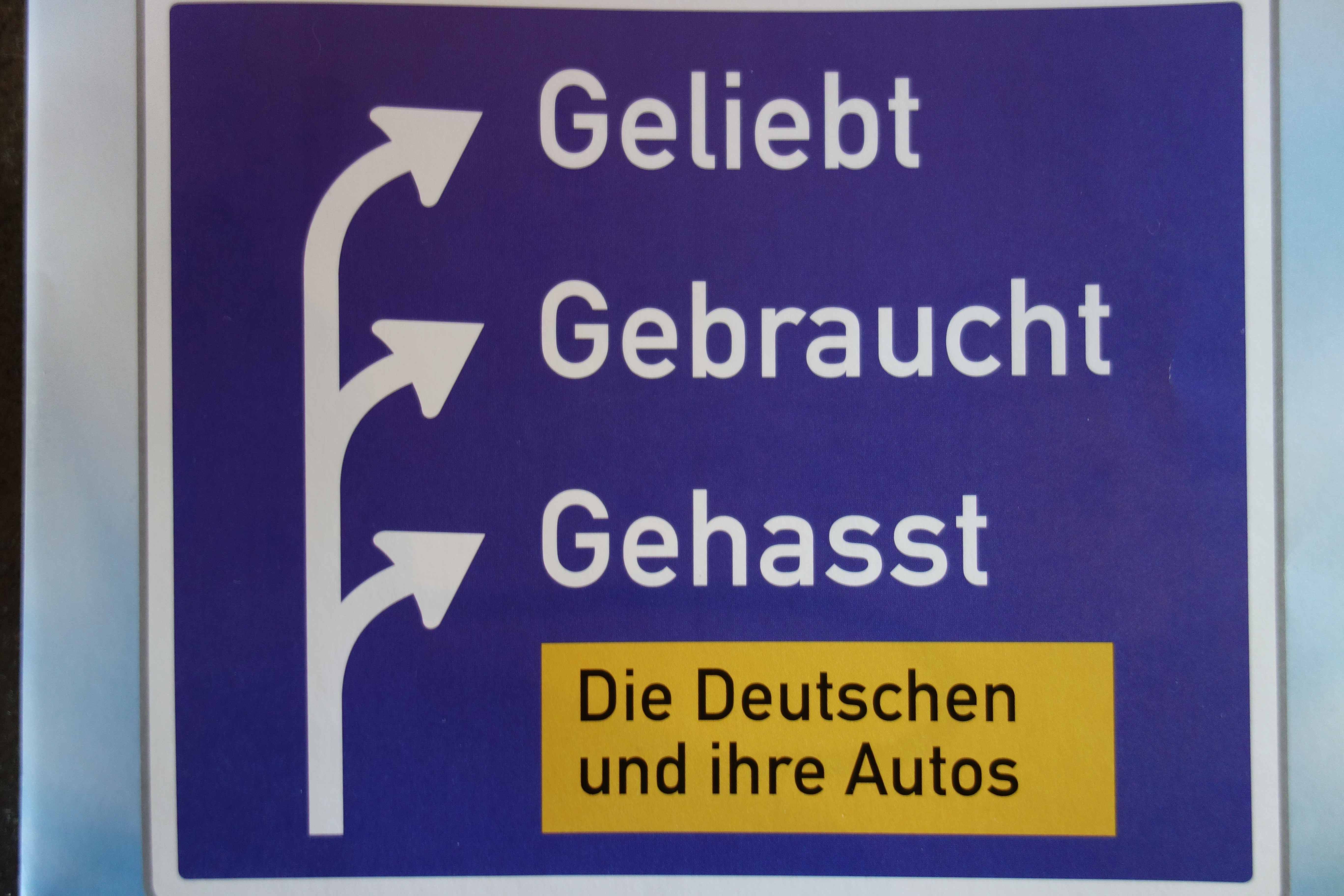 Всичко това е надлежно документирано и представено на новооткритата в Бон изложба за германците и техните коли под мотото „Обичани, ползвани, мразени“, а водещата реклама силно наподобява пътеуказателните табелки, с които аутобаните във Федералната република са снабдени повече от доволно. Входът е оформен като автомивка – с четки, решени в цветовете на националния трикольор, и дори това е достатъчно да определи значението на колата за германеца.