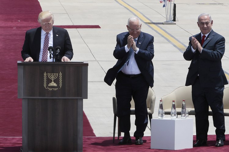 На летището на разпънатия червен килим американският президент и първата дама на САЩ Мелания Тръмп бяха посрещнати от Нетаняху и съпругата му Сара, както и от израелския президент Реувен Ривлин и членове на израелското правителство.