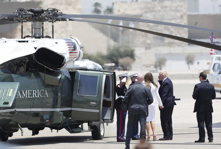 След посрещането на летището Тръмп и Мелания се качват на борда на хеликоптера "Marine One" за официалното посрещане в президентската резиденция.