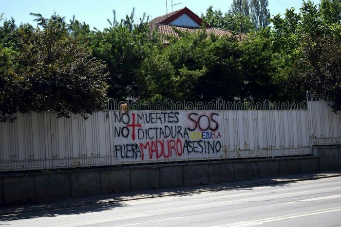 На празника срещу Мадуро протестираха и венецуелци, живеещи извън родината си. На оградата на резиденцията на посланика на страната в София за няколко часа бе опънат протестен плакат, призоваващ "убиеца Мадуро" да си ходи.