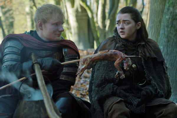 Видяхме в епизодична сцена и Ед Шийрън*. Създателите на сериала ни убеждаваха, че появата му във Вестерос няма да е самоцелна и единствено продиктувана от любовта на Мейзи Уилямс към изпълнителя, но за момента изглежда точно така (дори без да отбелязваме факта, че в компанията на рицарите-певци Шийрън изглежда по-скоро като смотания аутсайдер и едва отронва по думичка към малката Старк). Лично аз не съм убеден, че ще видим отново рижавата физиономия на Шийрън, но дори това да се случи, се надявам поне да е влязъл в Списъка на Аря.
