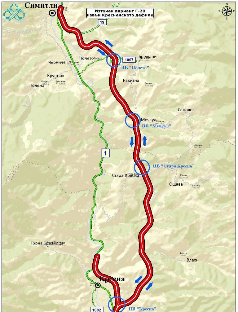 Предвидени са общо 5 нови пътни възела, както и връзка с Е79 в началото на обходния път на Кресна.