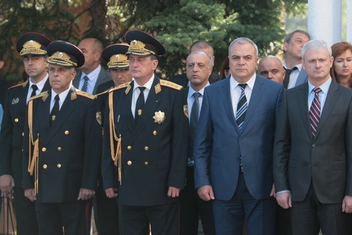 Зам.-министърът на вътрешните работи Стефан Балабанов, който до вчера преговаряше със синдикатите по исканията им за пари, също уважи церемонията.