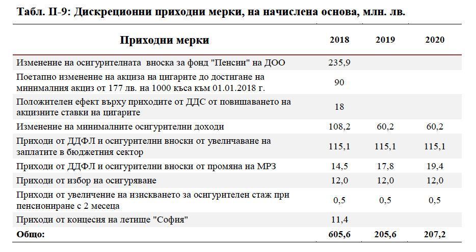 Приходната част на проектобюджет 2018 също е интересна. В документа за актуализираната средносрочна прогноза например е записано, че се очаква ръст на приходите от концесии, като той се дължи на намерението на правителството да реализира концесията на летище "София". Ако това стане, се очаква еднократно плащане от страна на бъдещ концесионер в размер на 480 млн. лв. На годишна база до 2020 г. приходът от тази концесия би бил 11,4 млн. лв., става ясно още от разчетите.