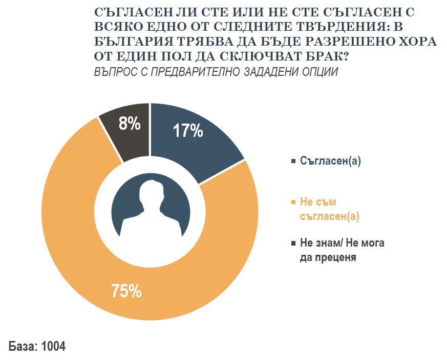 Не е изненада и че 75 на сто, или три четвърти от хората, са против еднополовите бракове.