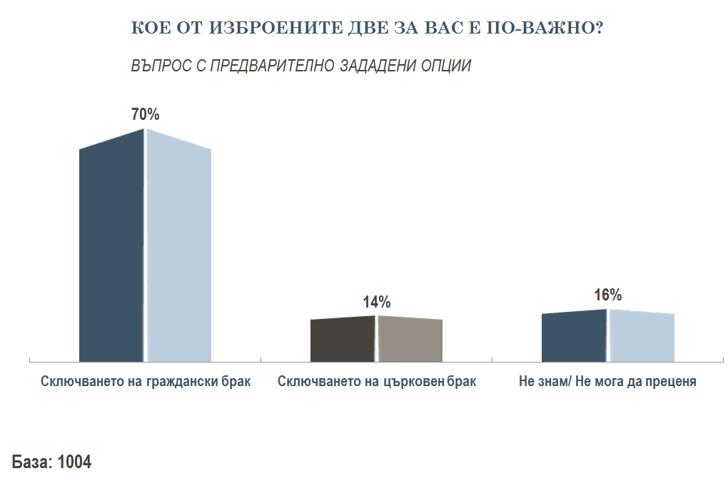 Според българина семейството е най-голяма ценност, както е отчетено в изследването на "Тренд". Поне на теория. 53 на сто смятат, че хората трябва да сключват брак. За живот на семейни начала се обявяват 37 на сто от анкетираните.