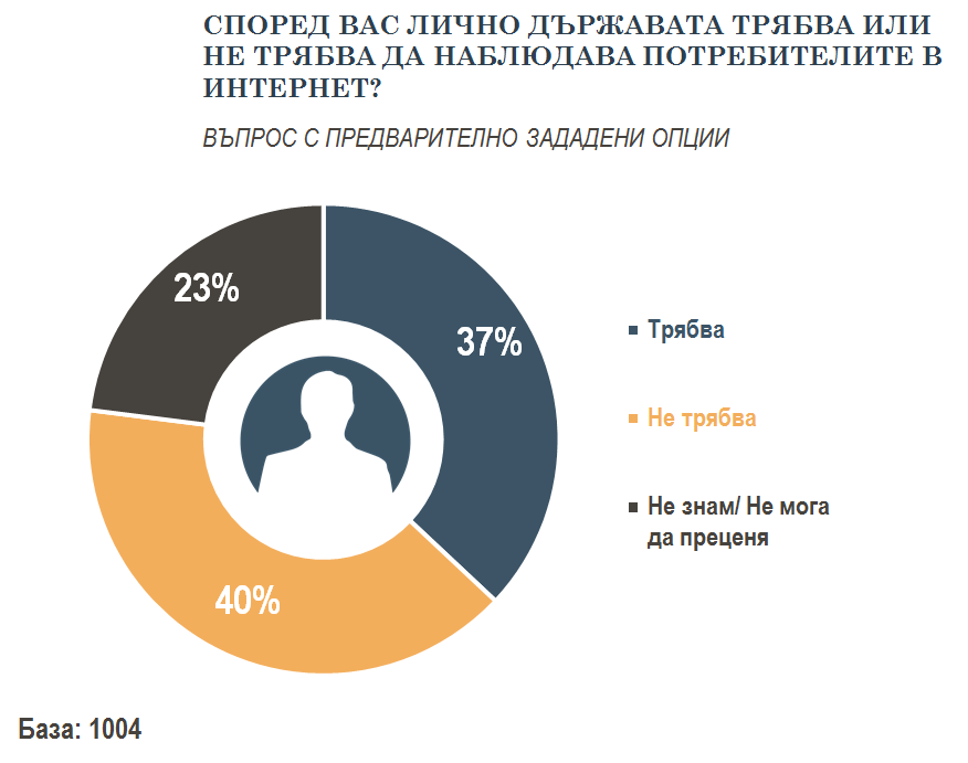 Залитането към твърдата ръка проличава и в отговорите на въпроса дали държавата трябва да наблюдава потребителите в интернет. Доста притеснително - мненията "да" и "против" са почти изравнени. 37 на сто отговарят положително, 40 на сто са против следенето.