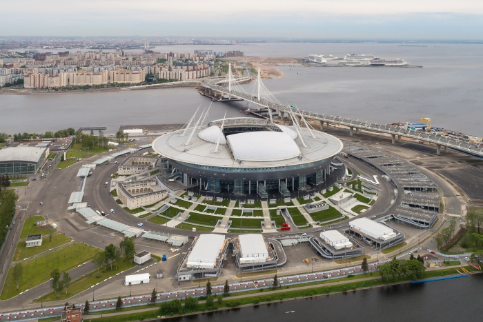Носи името на острова, на който беше издигнат. Идеята е била да прилича на кацнал космически кораб. Всеки сам може да прецени дали е изпълнена. А това, което руснаците крият е, че с днешна дата това е може би най-скъпият стадион в света.