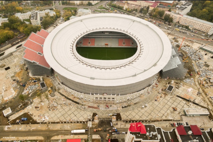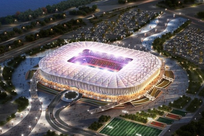 И този стадион се довършва. Екстериорът е почти завършен и има фитуристичен вид. Това е една от най-модерните арени за мондиала. Може да побере най-много 44 918 зрители.