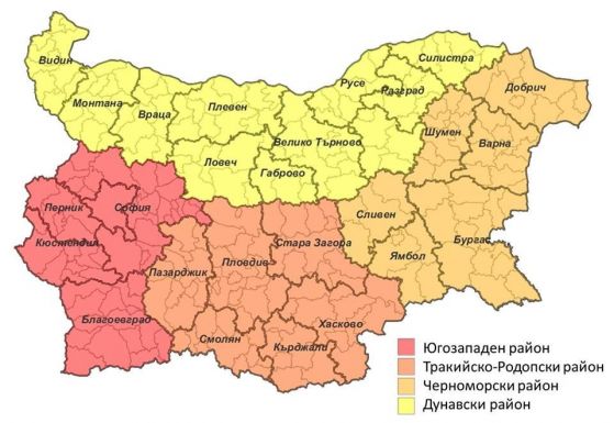 Вторият вариант с четири района: Югозападен, включваща областите: Софийска, София-град, Благоевград, Кюстендил и Перник; Тракийско-Родопски, включващ областите Пазарджик, Пловдив, Стара Загора, Хасково, Кърджали и Смолян; Черноморски, включващ областите Сливен, Ямбол, Бургас, Варна, Добрич и Шумен; Дунавски, включващ областите Търговище, Видин, Монтана, Враца, Плевен, Ловеч, Габрово, Велико Търново Русе, Разград и Силистра.