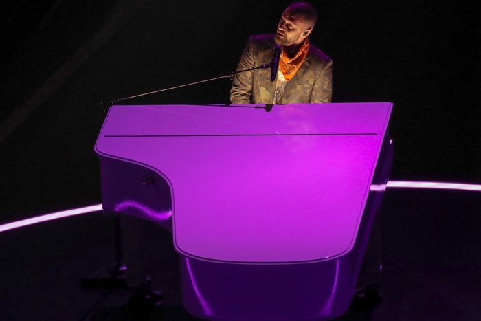 Двубоят ще се запомни и с шоуто на полувремето, поверено на Джъстин Тимбърлейк. Певецът използва няколко сцени, един куп танцьори, а в края на 15-минутния си концерт се качи и на трибуните. В най-вълнуващия момент от изпълнението на Тимбърлейк на холограма се появи Принс, а стадионът отвътре и отвън бе оцветен в лилаво - любимия цвят на починалия поп идол.