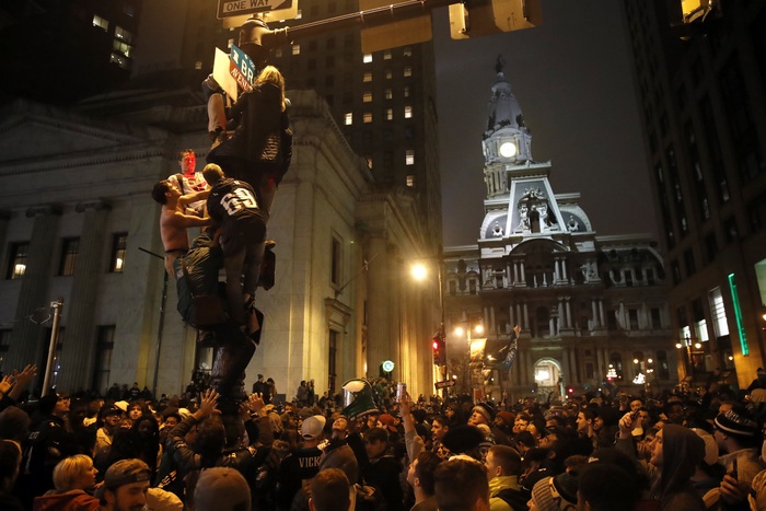 След края на сблъсъка десетки хиляди фенове на "орлите" излязоха да пируват по улиците на Филаделфия. Купонът продължи до среднощ. Имаше и поражения - счупени витрини на магазини и пъбове, обърнати коли, потрошени светофари и улични лампи...