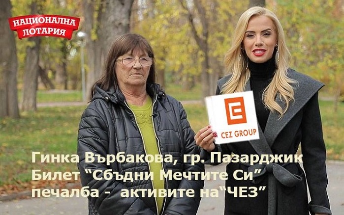 „Уважаеми зрители, намираме се в Пазарджик. До мен е късметлийката, която спечели активите на ЧЕЗ от билета на Национална Лотария "Сбъдни мечтите си".