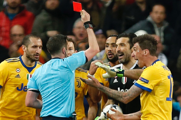 Отсъждането на британския арбитър е, меко казано, дискусионно. А секунди по-късно той изгони вратаря на гостите Джанлуиджи Буфон, за когото това може да се окаже последен мач в Шампионската лига.