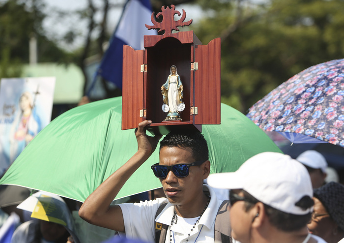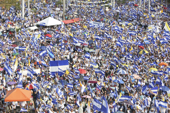 Повечето от събралите се бяха облечени в синьо и бяло, цветовете на националното знаме. Те се разделиха на три потока в Манагуа, за да се съберат пред катедралата.