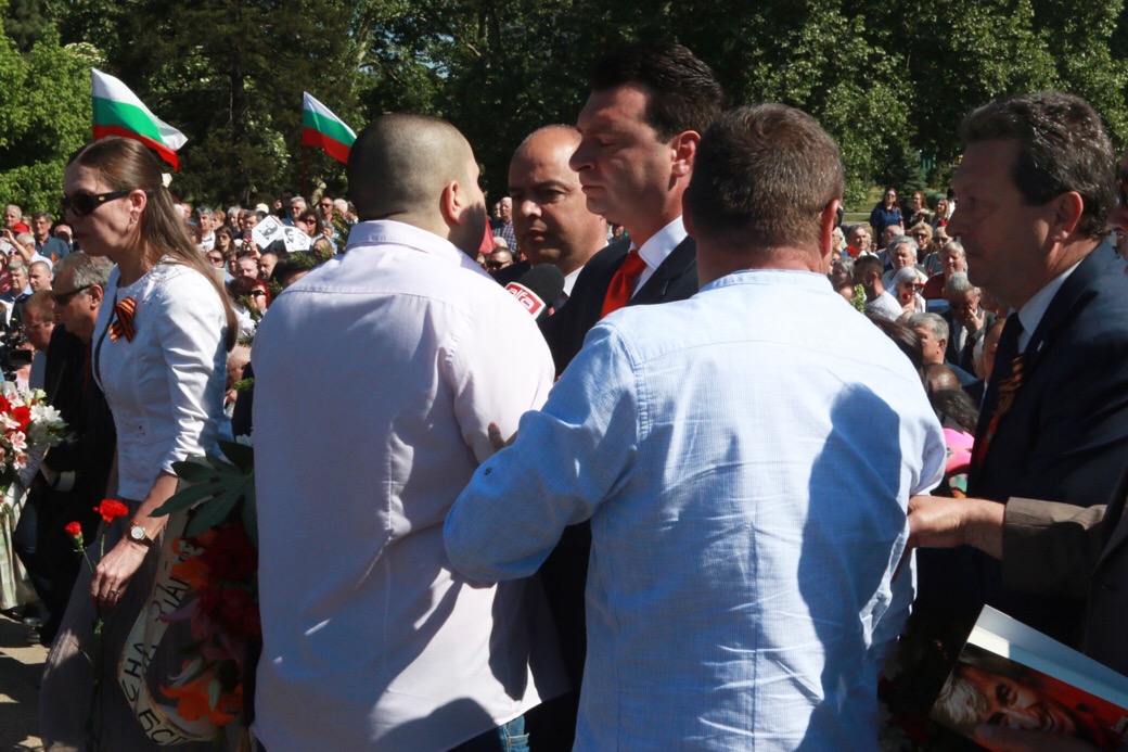 Събитието не мина и без инциденти. През последните години БСП и "Атака" открито си съперничат за това кой е най-верният изразител на интересите на Кремъл у нас. Това се случва дори и от парламентарната трибуна. Съперничеството доведе до конфликт пред Паметника на Съветската армия между депутата Славчо Велков, лидерът на БСП-София Калоян Паргов и репортер от телевизия "Алфа", която е партийната телевизия на "Атака".