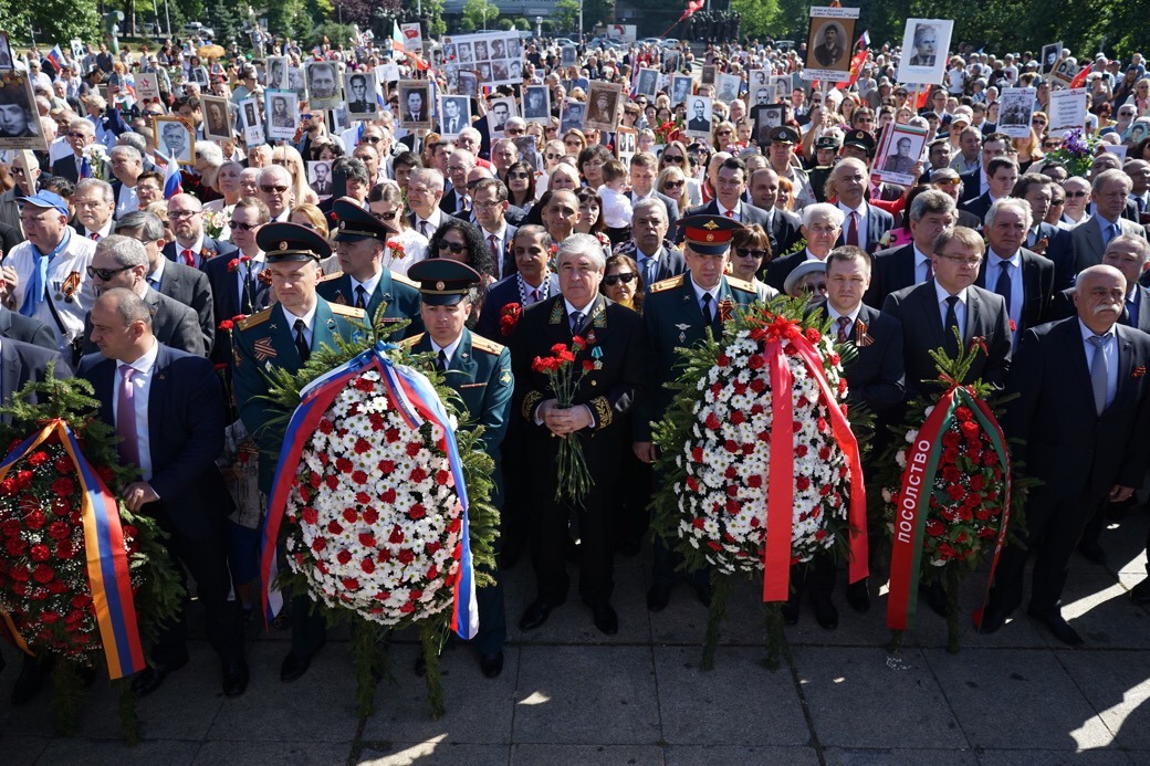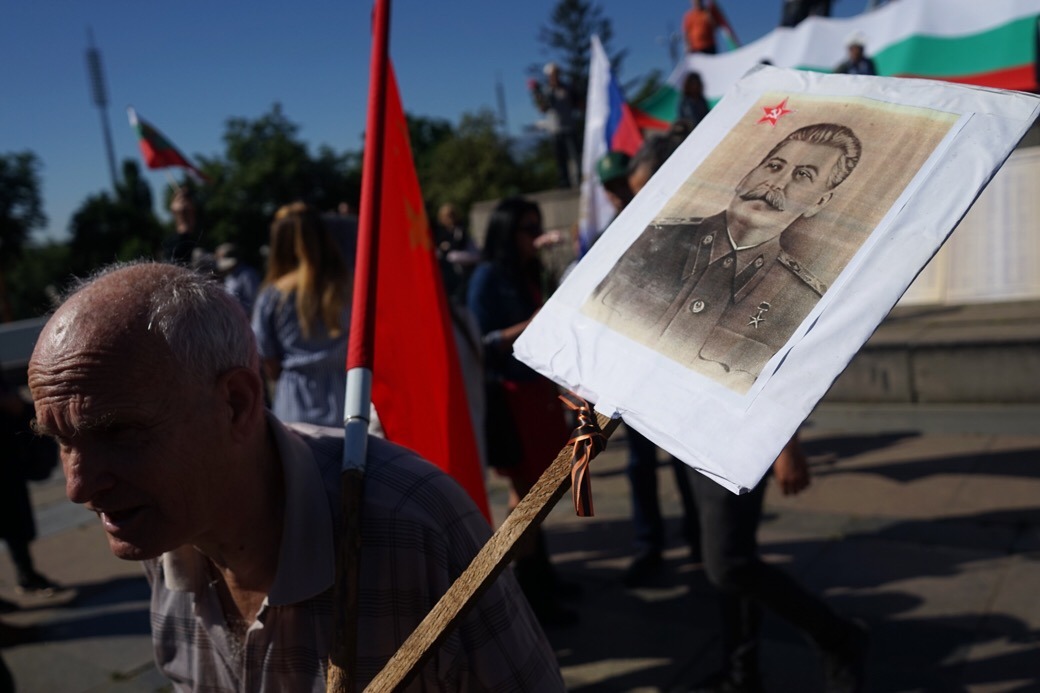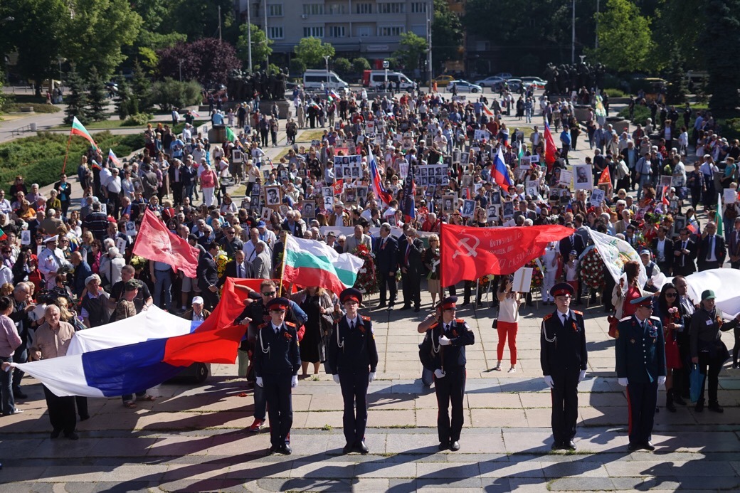 Руските знамена обаче имаха решително надмощие пред Паметника на Съветската армия. Както е известно, тази армия е окупирала България през 1944 г., за да установи тоталитарен режим в продължение на 45 години. По време на този режим страната ни бе откъсната от естественото си европейско развитие, а хиляди българи бяха убити или пострадаха от развихрилия се политически терор. Въпреки това и до днес този паметник стои в центъра на София.