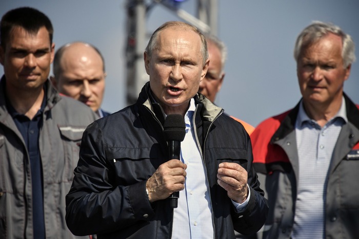 Той откри днес тържествено съоръжението, свързващо Керченския полуостров - част от анексирания преди 4 години Крим, с Краснодарския край.