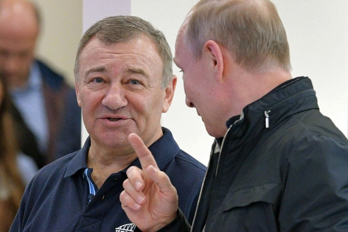 Путин разговаря с приближения си олигарх Аркадий Ротенберг, чиято компания "Стройгазмонтаж" построи моста.