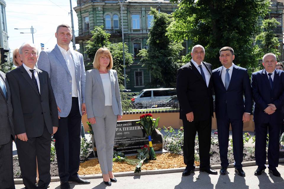 На втория ден от посещението си в Украйна премиерът Бойко Борисов и доманинът му Володимир Гройсман откриха площад и мемориална плоча на Димитър Пешев в Киев. На церемонията бяха и кметът на украинската столица Виталий Кличко, както и кметицата на София Йорданка Фандъкова.