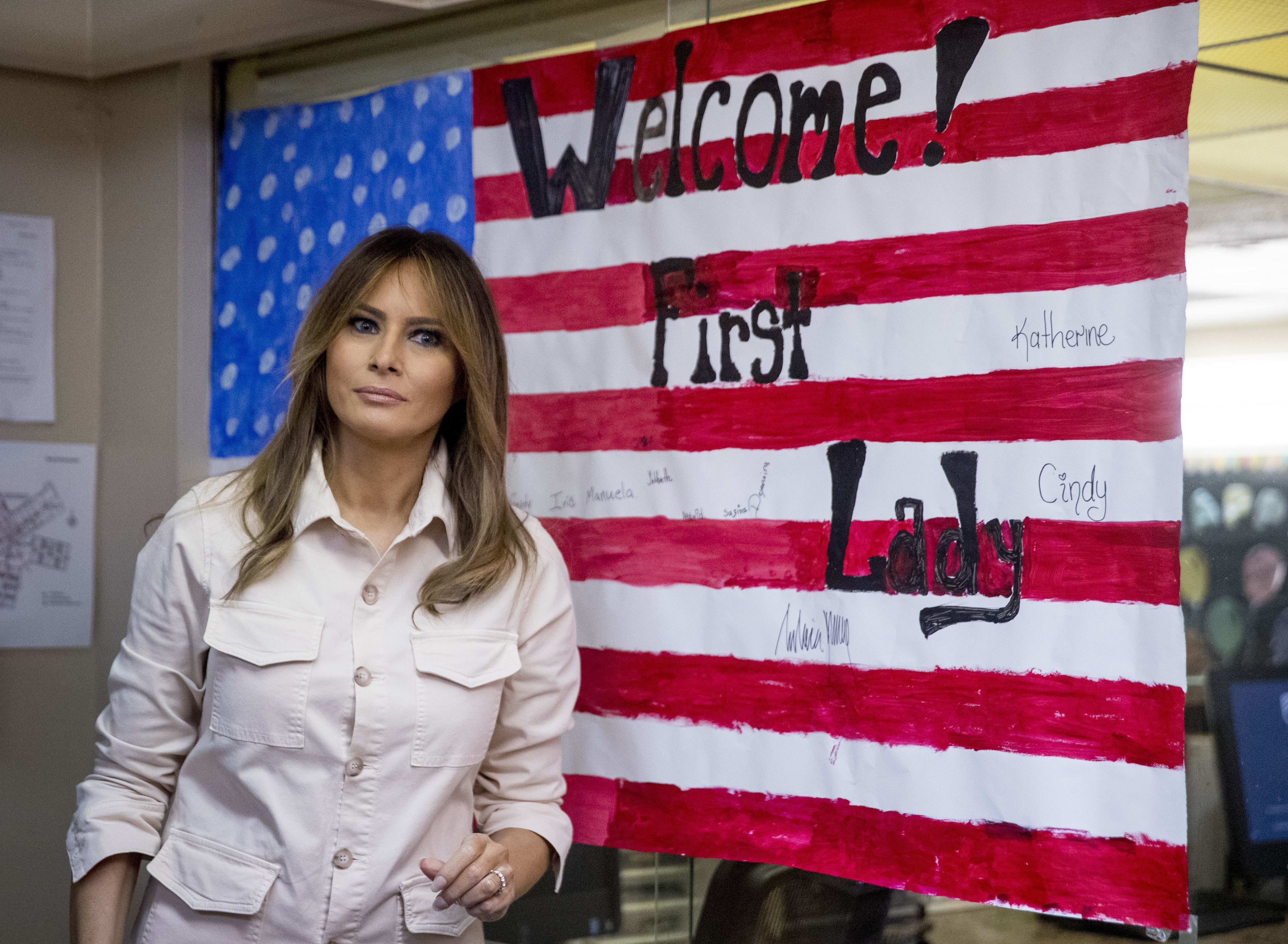 Визитата на Мелания в района става малко след полемиката, която породи политиката на разделяне на деца на мигранти от техните родители, влезли незаконно в страната през границата с Мексико.