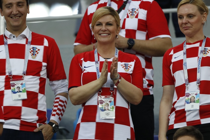 Държавният глава влезе в съблекалнята на тима след 120-минутната битка, решена с дузпи, и се включи празненството. Всички скандираха и пееха патриотични песни, като например "О, Хърватио, майко наша" (Zovi, samo zovi...).