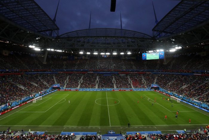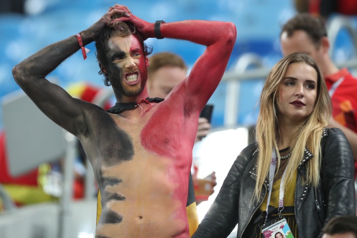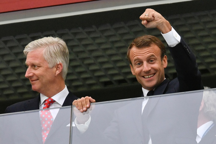 Това стана пред погледите на френския президент Еманюел Макрон и на белгийския крал Филип (долу), които проследиха двубоя от ложата на стадиона на "Зенит". Сред зрителите беше и вокалистът на "Ролинг Стоунс" Мик Джагър.
