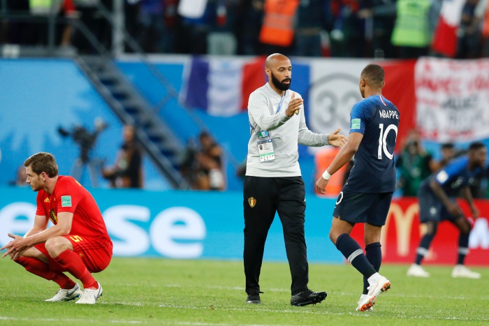 Световните шампиони от 1998 г. са на финал на мондиал за трети път (вторият случай беше през 2006 г. в Германия, когато загубиха от Италия с дузпи). Тиери Анри, един от помощниците на белгийския селекционер Роберто Мартинес, прегърна и поздрави своите сънародници преди и след мача.