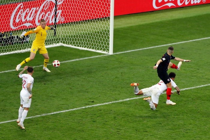 Така те усетиха явно, че могат да си спестят дузпите този път. Започнаха по-добре във второто и в 109-ата минута Марио Манджукич заби за 2:1 след много груба грешка - поредната в английската отбрана. "Заспиване". Иван Перишич - героят на мача днес, изработи попадението с глава и таранът на "Ювентус" матира Пикфорд отблизо.