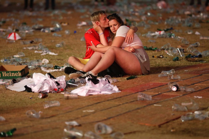 Голяма част от руските фенове на стадиона наистина подкрепяха Англия, както се заканиха. Изреклият репликата "Слава на Украйна" Домагой Вида бе освиркван, когато играеше с топката.