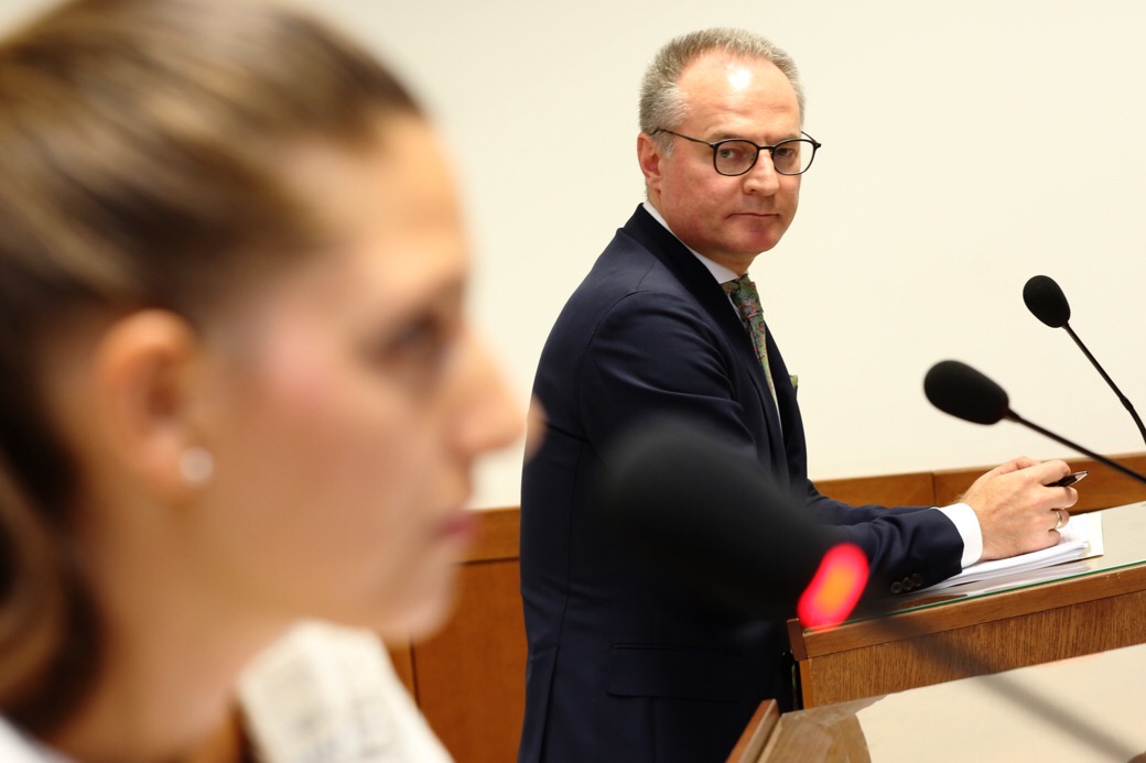 Младият съдия Ангел Павлов дори на някоко пъти го скастри: че му тече разпит, а в пледоариите си може да прави оценка на закони и факти, че е сгрешил името на ЕКПЧ (както разговорно се нарича Емвропейската конвенция за защита правата на човека и основните свободи, всъщност - ЕКЗПЧОС, б.а.), че не приема писмените му бележки, понеже в залата има и публика и трябва да слуша.