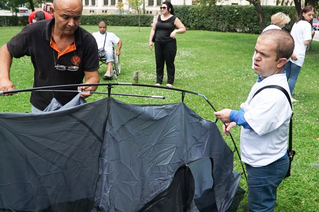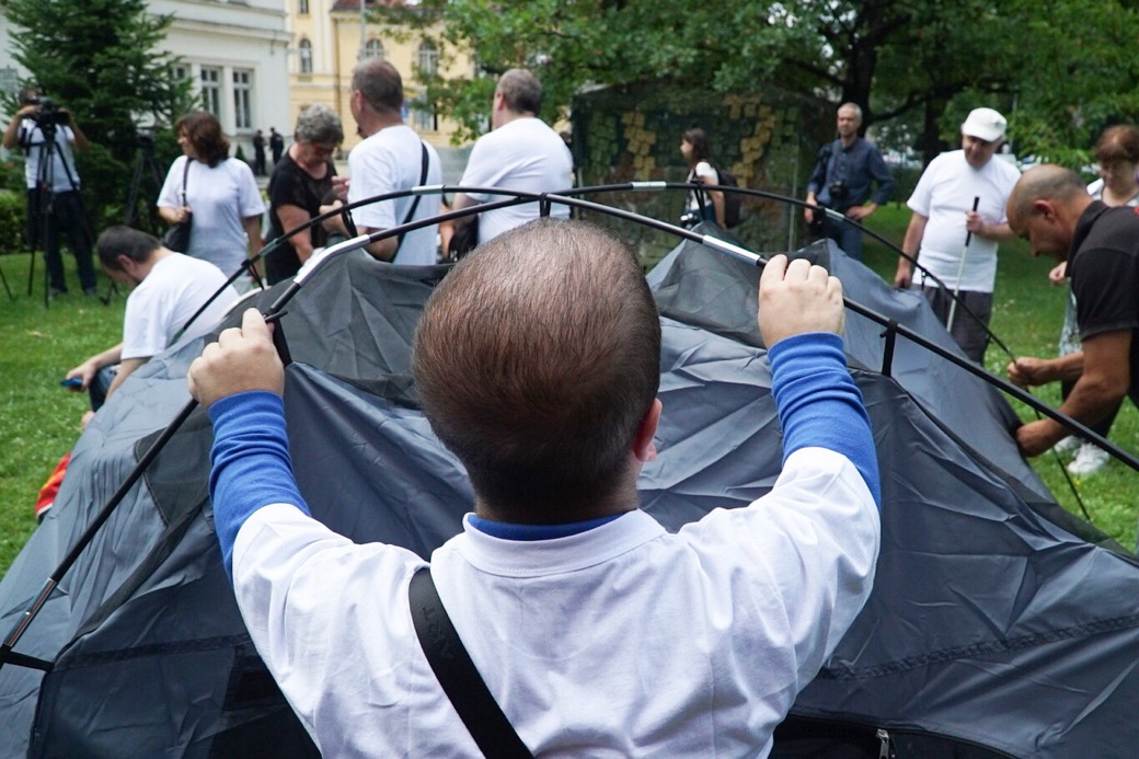 Втори палатков лагер изникна в близост до Народното събрание. Той отново е в защита на права на хора в увреждания, но е нещо като "контра" на палатката пред служебния вход на институцията, която вдигнаха преди месеци майките на деца с увреждания.