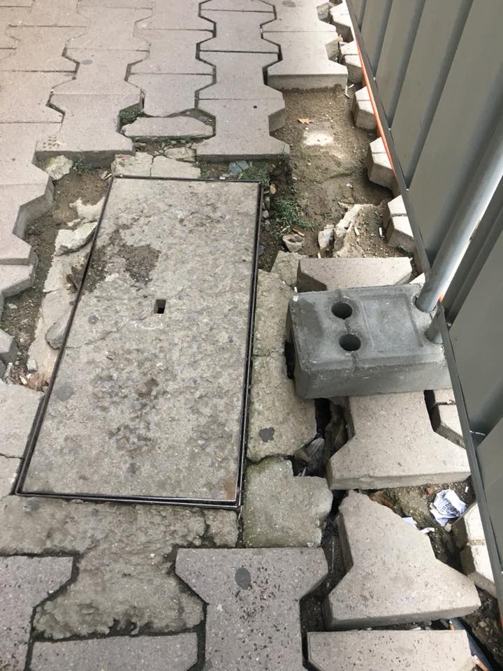 2. Как е осигурена безопасността на преминаващите покрай ремонтите (например от спъване и пресичане без видимост) и провежда ли се контрол върху обезопасяването? При ограждането на обектите са използвани бетонни стойки за металните огради, от които стърчат железа и не само затрудняват преминаването по стеснения тротоар, а и застрашават преминаващите със спъване и нараняване. Вечерно време тесните пътеки с начупени плочки покрай строежите не са осветени.