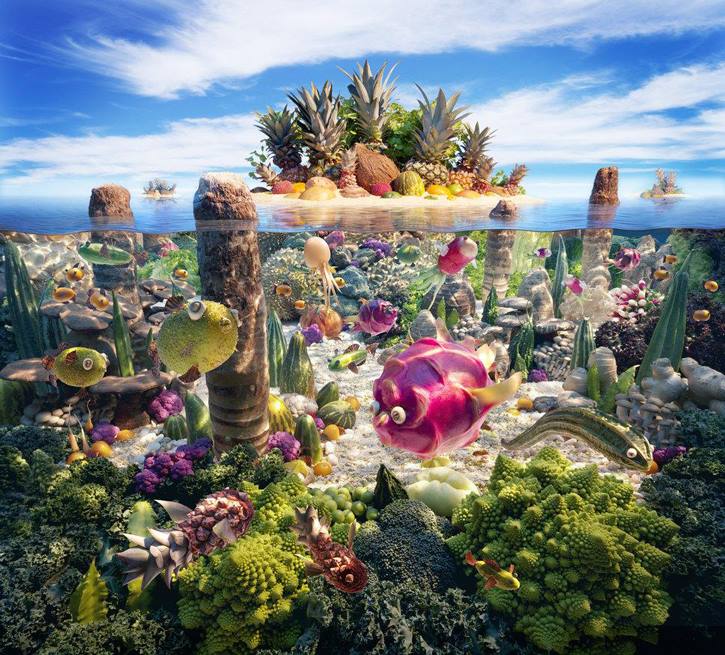 Храната не е само за ядене. Пейзажи от зеленчуци, портрети от плодове, машини от шоколад - това е запазената марка на фотографа Карл Уорнър.