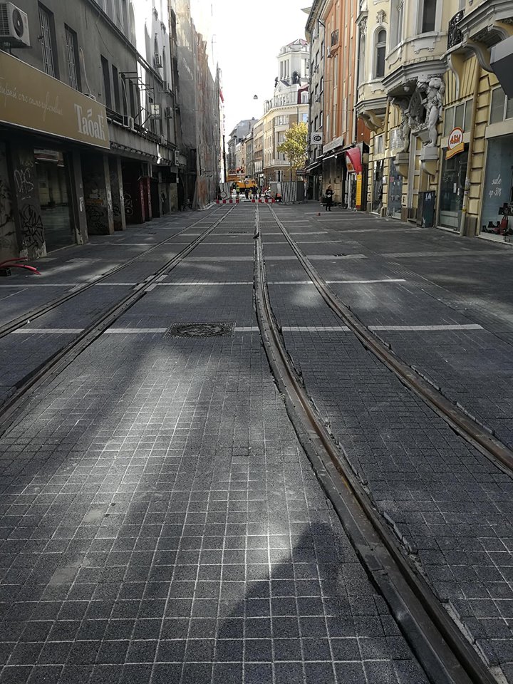При пл. "Гарибалди" се изпълняват гранитни настилки в зоната на площада, при релсовия път и кръстовището. В участъка от пл. „Гарибалди“ до пл. „Славейков“ се извършва демонтаж на тротоарните настилки, като е започнало и полагането на новите.