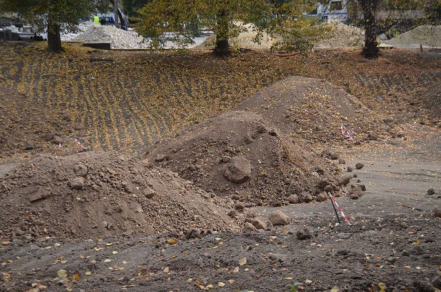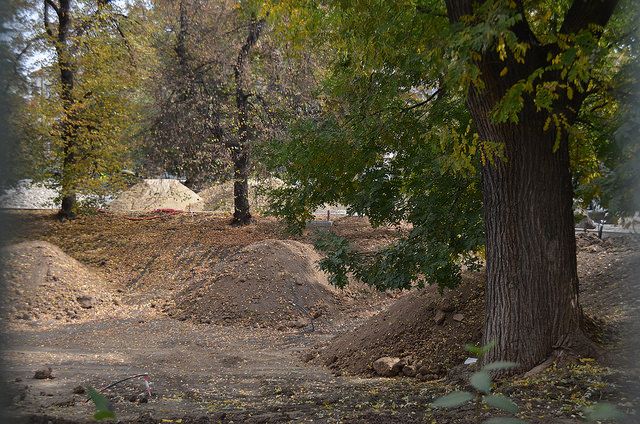 През последните дни в същата тази падинка камиони изсипват купчини с пръст, камъните са извадени и подредени отстрани – и работниците казват, че не знаят защо. Страхуваме се, че искат да направят градинката 2D и да лишат София от едно от най-прелестните му местенца.