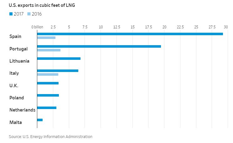 Изданието припомня, че Тръмп активно лобира Европа да купува значителни количества втечнен природен газ (LNG). Германски и американски представители заявиха, че Берлин се надява, че вносът на втечнен газ от САЩ може да помогне за разрешаването на продължителен търговски спор и вероятно дори да разсее заплахите на Вашингтон да санкционира газопровода "Северен поток" 2, който ще удвои съществуващия руски газов капацитет за износ на Германия.