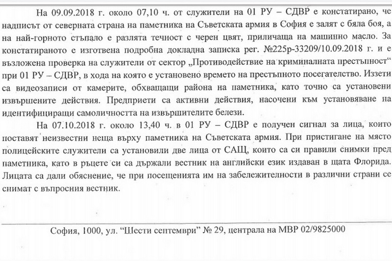 МВР ще предприеме сериозни мерки за охрана на Паметника на Съветската армия в София. Това става ясно от писмен отговор на вътрешния министър Младен Маринов на въпрос от депутати на БСП по време на парламентарния контрол.